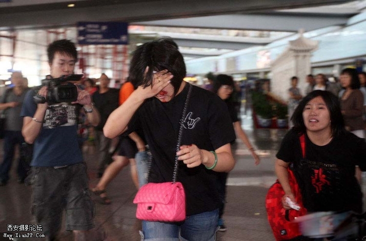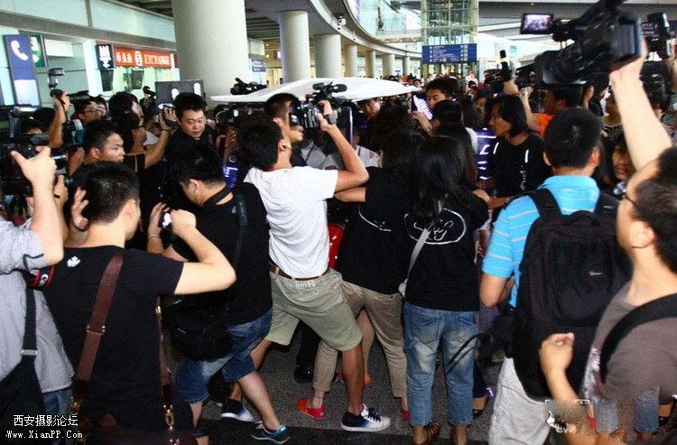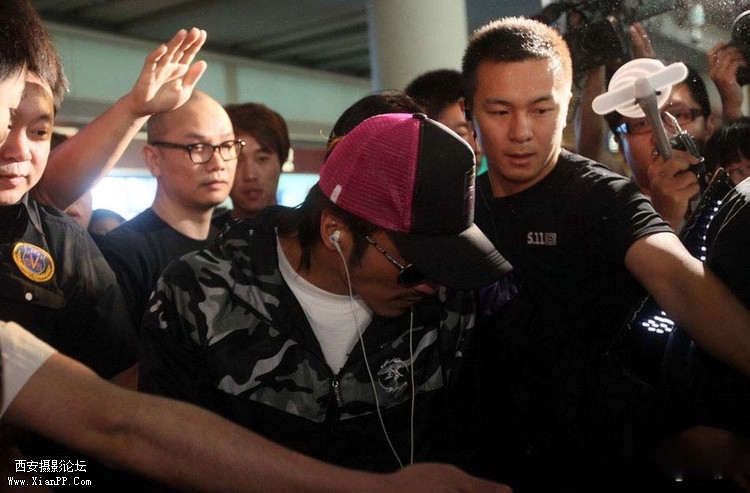 2011年6月26日,北京,身陷“婚变”风波中的谢霆锋亮相北京机场,准备参加电影《财神客栈》的发布会。歌迷组成庞大“安保团”护送谢霆锋,因现场太过混乱,有歌迷跌倒和受伤,还有歌迷头部撞 ...